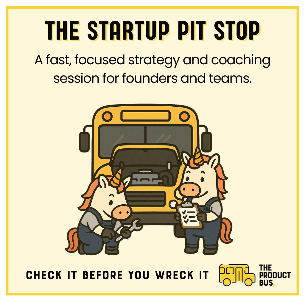 Your startup GPS at any crossroad. Book a Startup Pit Stop for validating initial ideas, evaluating current direction, considering pivots, or prioritising next steps.